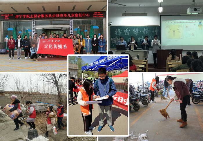 在此次学雷锋志愿服务月中,我校各级团组织、志愿者组织以学雷锋志愿服务活动为契机,美化学习生活环境,建设美丽校园,开展校园清扫、小广告清理等活动。同时,各系团总支结合学生专业优势实施志愿项目,开展志愿服务进社区、进公共服务区活动。文化与传播系青年志愿者协会走进济宁惠泽儿童康复中心,开展了以“爱心相伴,与你同行”为主题的志愿服务活动给聋哑儿童送去关爱与温暖。外国语系志愿者赴兖州火车站开展了以“传承雷锋精神,弘扬新时代正能量”为主题的学雷锋志愿服务活动,到售票厅、进站口、安检处等地帮助乘客取票、安检、托运行李并为乘客提供咨询。初等教育学院志愿者赴石门山镇看望慰问贫困家庭和孤儿院孤儿,为老人孩子们打扫卫生,聊天谈心送去温暖。数学系开展“学习雷锋,宣传精神”主题团日活动,同学们用视频、演讲、相声、小品、朗诵等节目,分享了身边的雷锋精神,讲述身边的雷锋故事,呼吁大家向雷锋同志学习,继续传承和发扬雷锋精神。