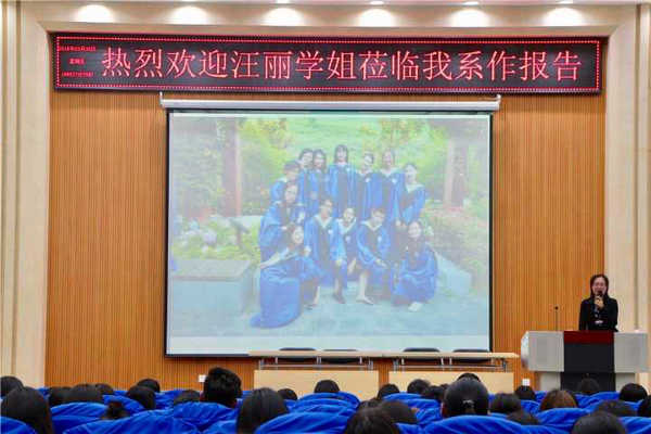 报告中汪丽博士结合自己的求学经历,围绕自主学习这一主题 进行了讲述。由本科阶段自主学习意识的培养到研究生、博士阶段自主学习模式的建构和完善,这一成长过程也阐释了优异成绩背后所付出的艰辛和努力。报告引起了热烈反响,同学们在报告后留出的问答时间里积极提出了关于学习方法、生活等方面的疑问,汪丽博士也作了认真的解答,现场气氛活跃,报告获得圆满成功。