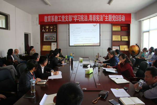 4月19日下午,教育系教工党支部开展“学习宪法、尊崇宪法”主题党日活动,学习新修订的《中华人民共和国宪法》。