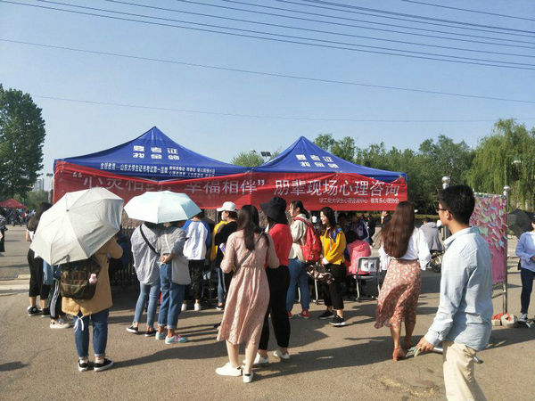 4月19-20日,由学生工作处(武装部)主办,教育系心理协会承办的“心灵相约,幸福相伴”校园现场朋辈心理辅导活动在校北门举行。此次活动是我校第十二届5•25大学生心理健康节系列活动之一,300余名学生参加了此次活动。