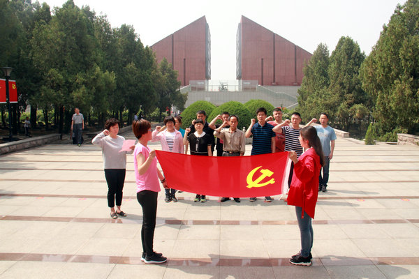 在孟良崮纪念馆,全体党员重温了革命先烈浴血奋战的革命事迹,在烈士墓碑前举行了“重温入党誓词”仪式,“我志愿加入中国共产党,拥护党的纲领,遵守党的章程……”党员们面对党旗庄严举起右手,铿锵有力的誓言,使每一位党员再一次接受了心灵的洗礼。