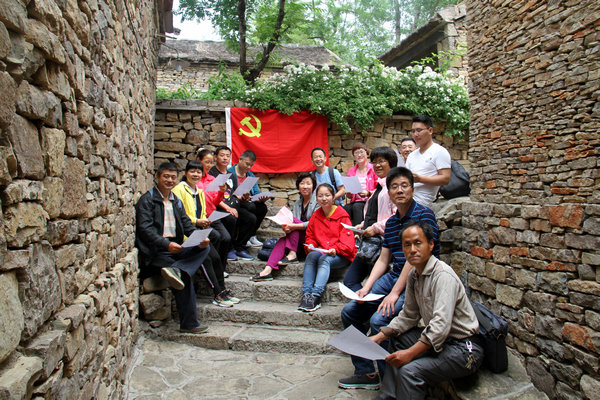 在沂蒙红嫂纪念馆,这里还保持着当年红嫂们居住的历史原貌,山势环绕,阡陌纵横,简朴的石屋,小小的院落,让大家的思绪飘向战争年代。走进展室,看着一幅幅珍贵的照片,“沂蒙红嫂第一人”明德英、“沂蒙母亲”王换于、“拥军妈妈”胡玉萍等一大批红嫂事迹深深感动着大家。通过参观展馆、观看纪录片等形式,再现了当年“鱼水情深、生死与共”的历史画面,使党员们对“红嫂”这一伟大的女性群体有了鲜活的认识,感触到了“爱党爱军、开拓奋进、勇往直前、永不服输、艰苦创业、无私奉献”的沂蒙精神。参观纪念馆之后,全体党员在红嫂纪念馆齐声合唱了《跟着共产党走》,表达了自己对党的无限热爱。