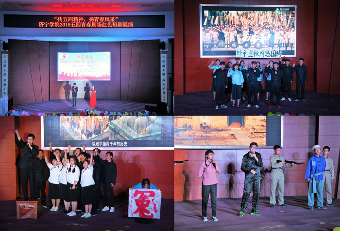 舞台上,同学们投入的表演和音视频配合,把现场观众带入了那些激动人心的峥嵘岁月,话剧《五四——曙光》、《苏家看中华(五四运动)》以五四运动为主线,流畅的表演和细腻的情感震撼人心。《情系汶川》还原震中感人故事,用青春力量将爱心传递。《伟大的共产主义者:刘胡兰》、《丰碑》、《伟大的开端》展现了共产主义者的刚毅不屈,革命精神永垂不朽。师生们纷纷被主人公的精神和事迹打动,深切感受到革命英雄人物对国家命运的责任担当。六部红色短剧的演出重温历史、回眸沧桑,以真挚的情感,触动了在场每一个人的心灵,让人久久不能忘怀。经过激烈角逐,来自中文系、外国语系、教育系的作品荣获一等奖,经济与管理系、学前教育学院、体育系的作品获得二等奖,初赛中呈现出的其它优秀作品获得三等奖;来自中文系的李琳获得最佳导演奖,学前教育学院的张茜茜获得最佳编剧奖,教育系的孙青获得最佳演员奖,外国语系获得最佳舞美奖。