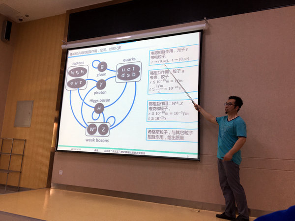 宋军用通俗易懂的语言,深入浅出地介绍了粒子物理背景、量子色动力学、强子化问题,重点阐述了他们研究小组最近发现的LHC能量pp和pPb碰撞中夸克重组机制与标志物理量等重要发现。宋军博士的报告激发了广大师生对粒子物理研究方面的浓厚兴趣。
