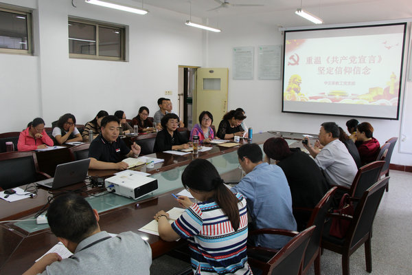 5月23日下午,中文系教工党支部在会议室组织开展“重温《共产党宣言》,坚定信仰信念”主题党日活动。全体党员参加会议。会议由系教工党支部书记王永超主持。