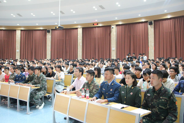 宣讲会上,胡敏就大学生退役士兵宣讲团成立的背景、目的、意义以及本次宣讲会的主要内容做了介绍。他指出,高校国防教育作为高校思想政治教育的重要组成部分,也是国家国防教育事业的重要组成部分。我校高度重视国防教育工作的普及和宣传,在学校领导的关心关怀下,成立了退役士兵宣讲团,旨在通过退役士兵的亲身经历,使广大同学了解军营、了解国防事业、学习国防知识,激发广大青年积极踊跃参军的热情。希望广大有为青年切实把握机遇,将参军入伍作为锻炼自我、磨砺自我、提升自我的最重要途径,将自我价值的实现自觉地融入到中华民族强军梦的伟大实践中,到火热的军营中去,到祖国最需要的地方去实现自身理想。