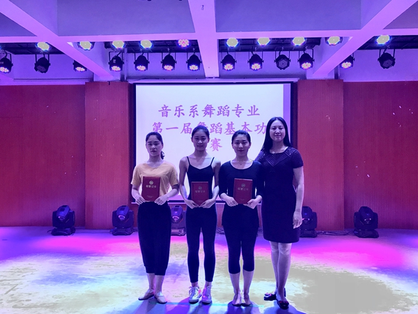5月21日上午9:00,音乐系第一届舞蹈专业基本功大赛在排练厅举行,系领导葛修路、郑宁、胥国红、唐秋晶出席了本次活动并观看了比赛。舞蹈教研室主任王鲁宁主持了本次比赛。