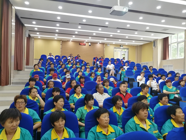 6月8日,后勤处邀请中文系教授赵雷博士在我校文科楼B101智慧报告厅作“提升员工文明服务能力”优秀传统文化讲座,明德物业公司、各餐饮公司负责人及一线员工200余人参加,讲座由后勤处副处长王涛主持。