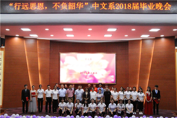 6月19日晚,中文系在理科楼报告厅举办“行远思恩,不负韶华”2018届毕业晚会。中文系领导和师生代表400余人参加晚会。