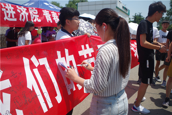 6月15日上午,中文系在校北门举办了以“悠悠楚辞进济院,青春激情话端午”为主题的端午节活动。中文系党总支书记王艳萍、副主任王永超、办公室负责人、辅导员和500余名学生参加了活动。