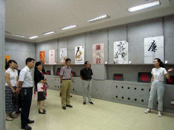 7月4日下午,初等教育学院组织部分干部职工,在校区党委书记朱宁波带领下,赴美术系展厅参观“庆七一”廉政文化作品展。