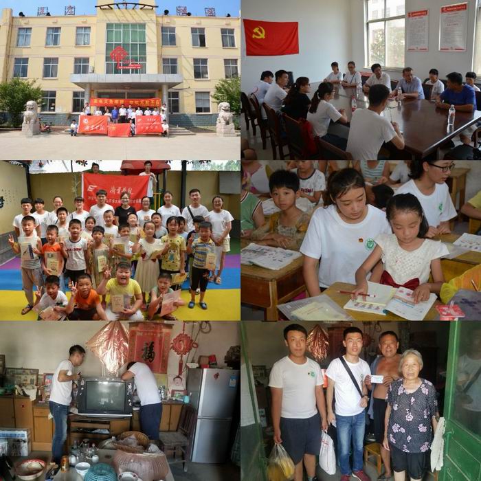 服务期间物理与信息工程系创新实验室的同学们在张营主任带领下发挥自身专业特长,通过村委会联系贫困家庭,开展了“家电义务维修、奉献无处不在”志愿服务活动,受到村民们的纷纷赞誉。师生们深入村户,关爱留守儿童,开展课业辅导、亲情陪伴,并进行文具捐赠,鼓励孩子们刻苦努力学习,长大后用实践行动回报社会。对建档立卡贫困家庭开展“送爱心赠温情”社会捐赠,进行政策宣讲及社会调研,向困难群众宣讲党和政府扶贫保障政策,调研贫困人民生产生活中存在的突出问题,并向每个建档立卡户留下“千村计划”志愿服务联系卡以确保长期联系。莒南县广播电视台对本次“三下乡.千村计划”专项活动进行了跟踪拍摄报道。