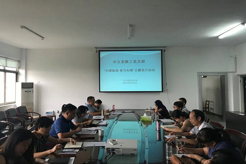 9月5日下午,按照学校统一要求,中文系召开“扫黑除恶 勇当先锋”主题党日活动。会议由系教工党支部书记王永超主持,全体教工党员出席。