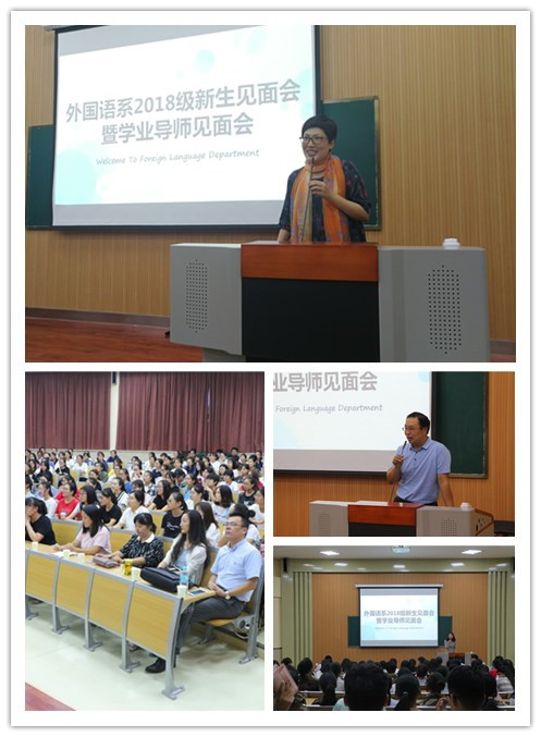9月12日晚,外国语系2018级新生见面会暨学业导师见面会在4号楼智慧教室B101举行。外国语系党总支书记陈彦华、系主任杨楠、副书记徐俊凯出席了见面会。大会由教学秘书范莉主持,同时参会的还有7位学业导师、辅导员以及2018级的266名新生。