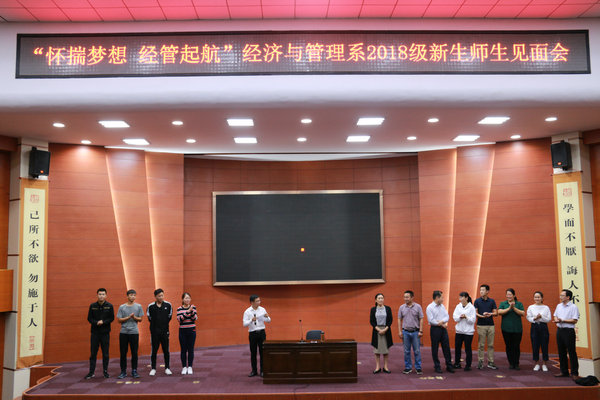 9月19日晚,经济与管理系于理科楼报告厅召开了以“怀揣梦想 经管启航”为主题的2018级新生师生见面会。经济与管理系主任齐慧丽、党总支书记陆波、副书记赵家凯、副主任王爱军、沙世蕤,以及辅导员和部分教师代表出席。2018级全体新生参加此次活动,新生辅导员张振老师主持会议。