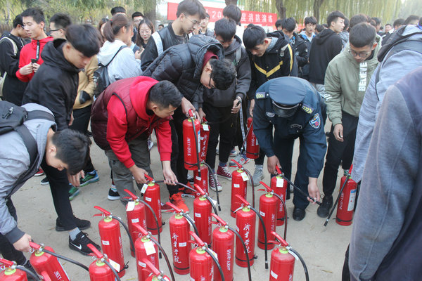 11月9日下午,我校联合曲阜市应急救援大队举办2018年度消防演练活动。学生工作处、后勤处、安全保卫处、陵城派出所驻校警务室等部门主要负责人,学生公寓、餐厅工作人员,学校通勤车驾驶员,各系大学生义务消防队员、大学生自律委员会成员约300余人参加演练活动。
