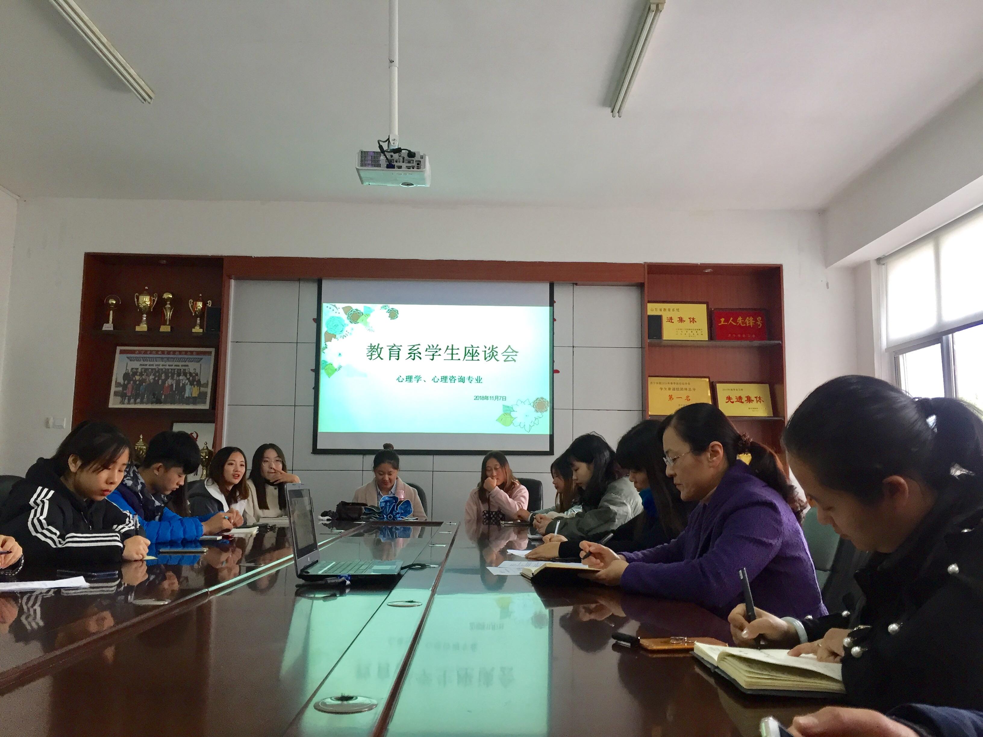 11月5日至9日,教育系组织召开了2018-2019第一学期期中教学专题调研会。此次调研会分三组进行,分别由教育系主任李群、副主任张邦伟、副主任单清清主持,各教研室主任、辅导员等出席座谈会,各班2名学生代表参加了座谈。