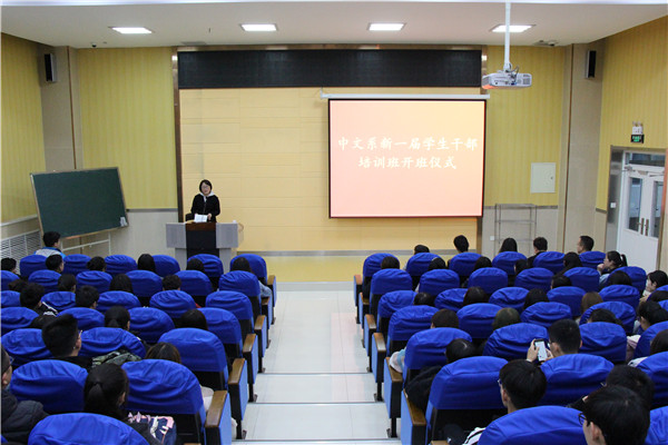 11月16日下午,中文系在文科楼B101室举行新一届学生干部培训班开班仪式。系党总支书记王艳萍、团总支副书记马永涛、各年级辅导员,新一届团总支、学生会全体成员和2018级全体班干部参加了开班仪式,系党总支副书记李青主持。