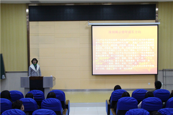 系党总支书记王艳萍以《牢记习近平总书记教诲,做勤奋学习、扎实工作、甘于奉献的学生干部》为题,为学生干部讲党课。从习近平总书记对青年人提出的“五点希望”“八字真经”“十六字诀”等方面进行阐释解读,从学生干部要有强烈的服务意识,要努力提高综合素质,要有高尚的境界和博大的胸怀三个方面提出要求,并希望大家牢记习近平总书记教诲,做勤奋学习、扎实工作、甘于奉献的学生干部,做无悔于青春,无悔于时代的有志青年!