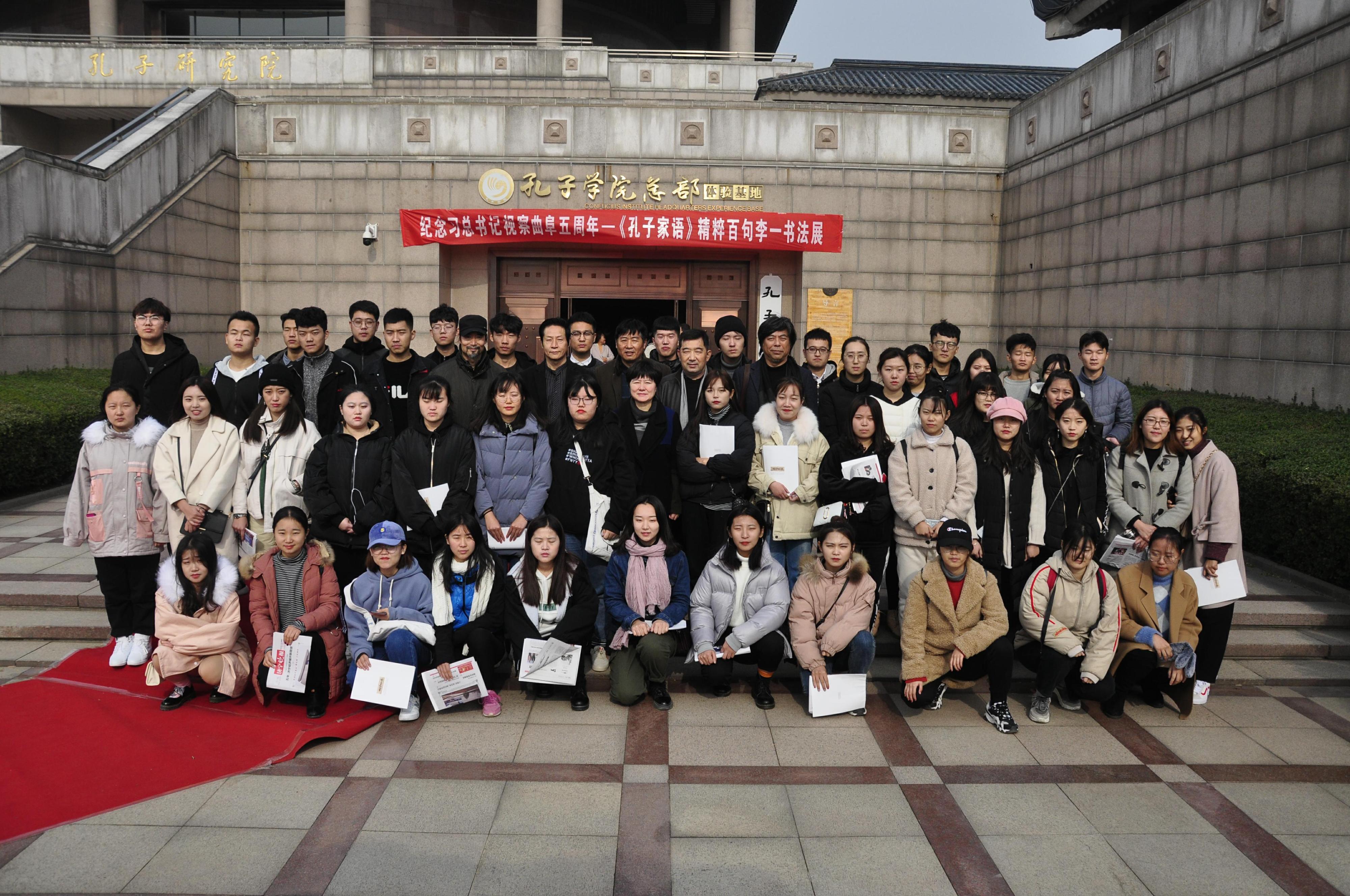 11月23日,纪念习近平总书记视察曲阜五周年《孔子家语》精粹百句李一书法展在孔子研究院开幕,美术系班子成员和师生参加活动。