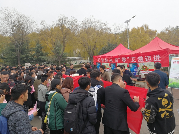 为进一步推进我校艾滋病防控工作,11月30日上午,学生工作处、后勤处共同在我校北门举办了“主动检测 知艾防艾共享健康”签名活动。学生工作处、后勤处、安全保卫处、曲阜市疾病防控中心等相关人员,各系副书记、辅导员及学生参加了活动。