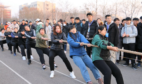 12月12日—14日,由校团委主办,校学生会和体育系团总支承办的2018年大学生拔河比赛在西健身广场顺利举行。全校各系积极响应,同学们踊跃参加。