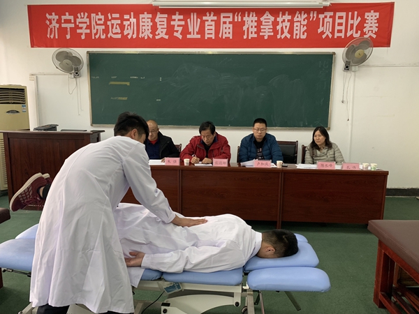 12月24日,亚星在线登录官网运动康复专业首届“推拿技能”项目比赛在体育系A102举行。外聘专家济宁市中医院针灸科主治医师卢加庆,及体育系孔伟、张清坤、朱强老师担任本次比赛评委老师。体育系2016级运动康复专业全体同学参加本次比赛。