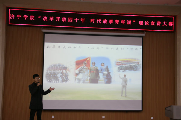 本次理论宣讲大赛紧扣庆祝改革开放40周年主题,在预赛44组队伍中脱颖而出的12组宣讲选手,以新时代青年的视角和话语体系,围绕改革开放40年期间参与、经历和见证的重大决策、重大工程、重大成就、重大事件,以及社会变迁、个人生活变化、难忘记忆、感悟等,从不同角度、不同侧面反映我国改革开放40年来经历的光辉历程和取得的伟大成就。刘亚琪同学结合改革开放40周年大会上的讲话内容,由习近平总书记提出的近代以来实现中华民族伟大复兴的三大里程碑引入,追溯社会、经济、文化等方面取得巨大成就,解读三个“充分证明”。谢志雅同学结合改革开放以来人们衣食住行的变化,解读了社会主要矛盾的变化。苗天宇同学以“我眼中的美丽智慧新济园”为题,结合校园学习、生活点滴,讲述了大学生眼中改革开放给学校带来的巨变。各宣讲选手展现了改革开放伟大实践给人民群众带来的更多获得感和幸福感,以及新时代青年学生“青春、责任、梦想、奉献”的价值追求和精神风貌。在紧张激烈的角逐后,经济与管理系刘亚琪同学获得本次比赛冠军。