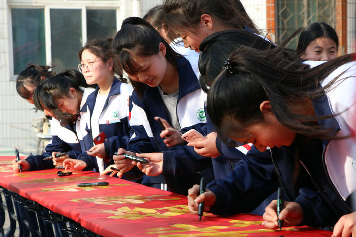副院长孙跃朋宣布“做文明学生,创文明校园”活动正式启动。随后,校礼仪队同学生动形象地进行了课堂、集会、颁奖、就餐、待人接物等文明礼仪表演。全体同学齐唱《校园文明之歌》,将活动推向高潮。学生代表程婷做了《校园文明,从你我做起》主题发言,并带领全体同学共同宣誓。最后每位同学进行了“弘扬时代精神,争做文明先锋” 的主题签名。