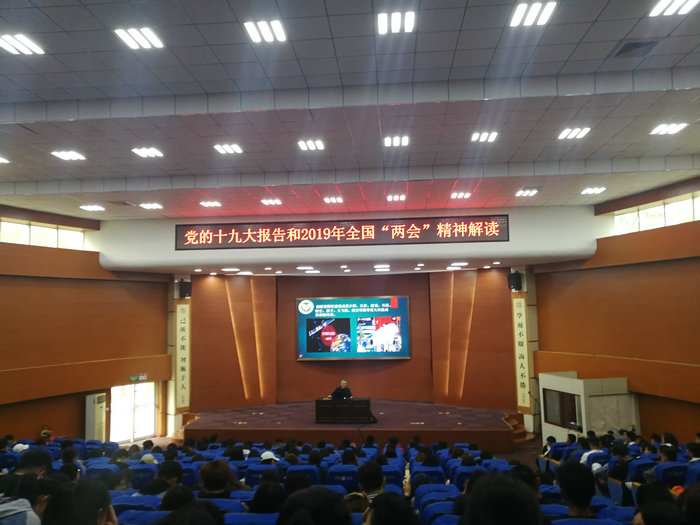 樊海涛从党的十八大以来我国取得的巨大成就、习近平新时代中国特色社会主义思想的理论内涵、2019年全国“两会”精神解读等方面,结合自己的亲身经历、学习体会、国内外形势、国家战略发展等,以真实、鲜明的图片、数字、视频等资料形式,用生动、形象、幽默的语言,给在场学员上了一堂印象深刻的党课,报告期间不时赢得学生阵阵掌声。
