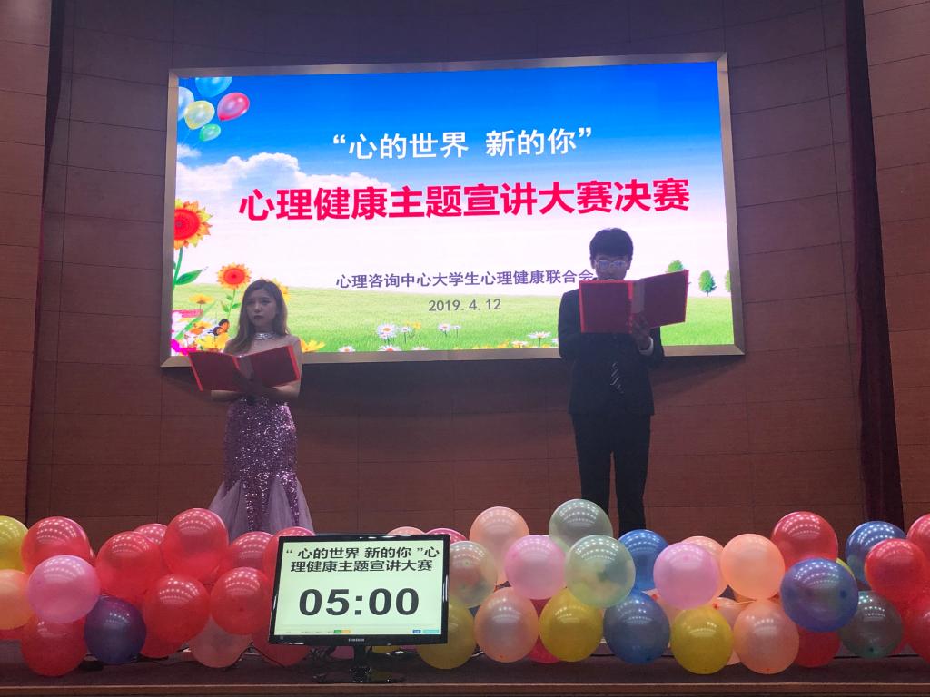 4月12日晚,由学生工作处大学生心理咨询中心主办,大学生心理健康联合会承办的“心的世界 新的你”心理健康主题宣讲大赛决赛在理科楼报告厅举行。各系辅导员和全校350余名学生观看了本场比赛。