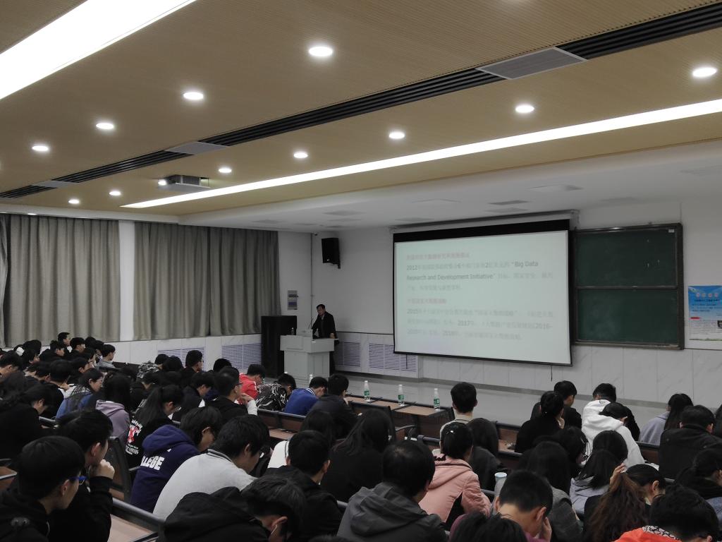 讲座上,黄传波老师指出,随着当代科技的飞速发展,云时代的到来,大数据的地位也随之提升,成为国家、企业和社会关注的重要战略资源,而基于大数据的人工智能就是其中的热门;黄传波老师为同学们讲解了人工智能的现状和未来,人工智能从诞生以来,理论和技术日益成熟,应用领域也不断扩大,可以设想,未来人工智能所带来的科技产品,将会是人类智慧的“容器”;黄传波老师还提到数据的开放将引领我们进入一个基于数据的万众创新和社会创新时代,“大数据引发变革”,大数据如此重要,以至于其获取、储存、搜索、共享、分析,乃至可视化地呈现,都成为了当前重要的研究课题,而这也将引领我们思维的变革。