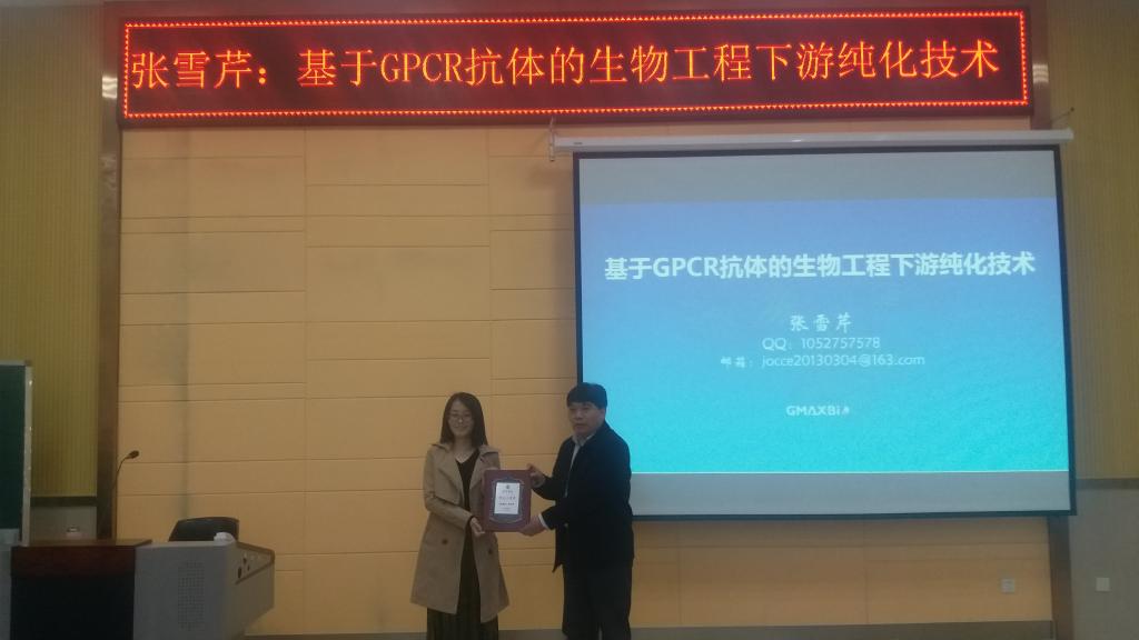 张雪芹校友的报告以《基于GPCR抗体的生物工程下游纯化技术》为题。她首先分享了自身大学生活,并将其分为“启发、目标定位、努力探索”三个阶段,激励同学们要自律、自省、自强。随后,她就目前所从事工作的研究内容作了简要介绍,讲解了基于GPCR抗体的生物工程下游纯化技术的基本理论和发展方向。她的报告使广大学子进一步了解了生物学科发展的前沿,激发了大家的学习、科研的热情。