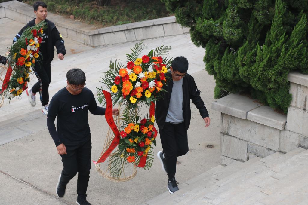 上午9时,六十余名师生在邹城市烈士陵园举行缅怀先烈仪式,外国语系党总支副书记许言强致辞。伴随着《中华人民共和国国歌》的响起,学生们在庄严肃穆的革命烈士纪念碑前向革命先烈肃立默哀,深深鞠躬致敬并敬献鲜花,深切悼念为革命事业做出贡献的先烈们,表达对先烈的缅怀和敬仰之情。