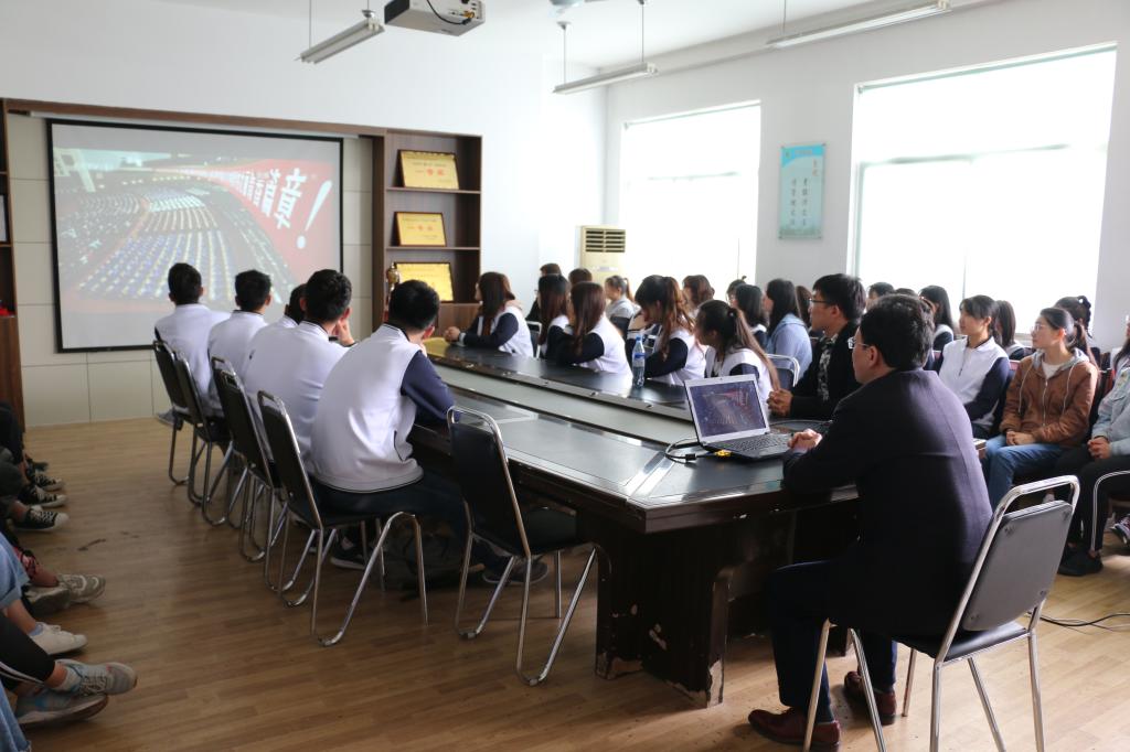 观看过程中,青年学生认真学习,及时记录,并在会后进行学习交流。经济与管理系党总支副书记赵家凯同志表示广大青年同学应当勇于担起党和人民的重托,自觉践行社会主义核心价值观,在激扬青春、开拓人生、奉献社会中谱写无愧于时代的壮丽篇章。辅导员张振同志表示青年学子是走在时代前面的奋斗者,奋斗不止是口号,要通过实际行动来践行。广大青年学子表示将认真学习贯彻五四精神,把树立远大理想和脚踏实地结合起来。在思想最开放、精神最活跃、精力最旺盛的年纪,努力奋斗,砥砺前行。