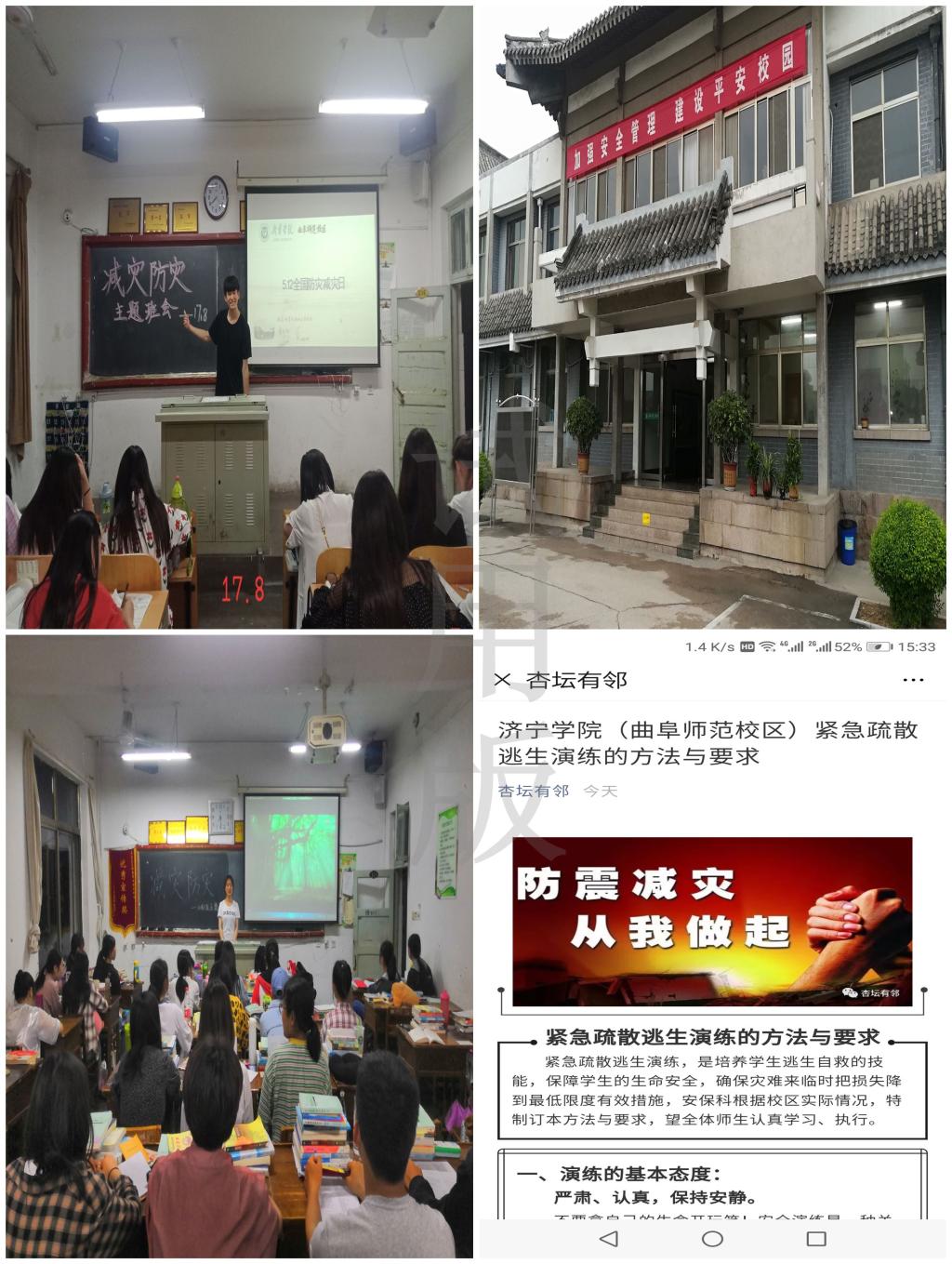 活动期间,初等教育学院通过广播、微信公众号、电子屏、宣传条幅、明白纸等媒介,向全体师生普及灾害风险知识和自救技能。同时结合实际,制订了《亚星在线登录官网初等教育学院(曲阜师范校区)紧急疏散管理办法》,制作了《5.12防灾减灾科普教育片》,各个班级统一召开了以防灾减灾内容的主题班会,并组织物业、食堂工作人员开展了消防演练。另外还组织相关人员进行了安全风险隐患排查,对发现的隐患现场进行了处理。