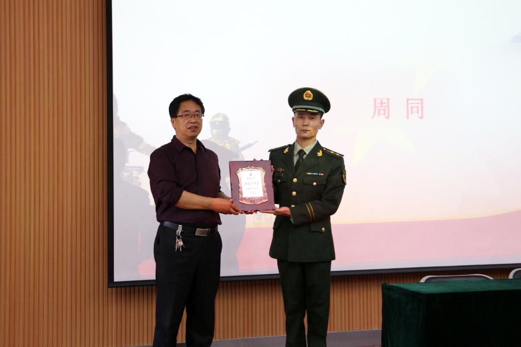 5月22日下午,我校2009级化学与化工系校友周同应邀来校作“报国从军 无悔从军”报告。学生工作处(武装部)处长(部长)夏可树参加报告会,并为其颁赠了“校友大讲堂”的纪念铭牌。各系(院)辅导员及学生代表500余人聆听了报告。报告会由学生工作处副处长孔国良主持。