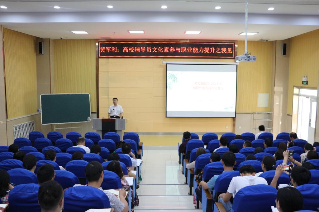 报告会上,黄军利结合学生工作典型案例,紧紧围绕高校辅导员文化素养与职业能力提升进行了深入浅出的讲解。他认为,辅导员要充分认识自身在学生工作中的重要作用,解救学生于迷茫之中,具备“以文化人”的能力;辅导员要保持良好心态,从合理解决学生各种问题中寻找快乐,具备 “以文化事”的能力;辅导员要引领学生健康成长,多读书、多思考,具备较高思想水平。为此,他建议辅导员向中华优秀传统文化学习,汲取学生教育的营养;读万卷书,行万里路,积极践行中华传统意义上的人才培养之道;“持经达变”,因人而异、灵活多变地处理学生工作中的矛盾。同时在工作中,辅导员要树立辩证意识,懂得换位思考,分清轻重缓急,掌握政策法规,运用“以文化人”的方法,教育引导学生成长成才。
