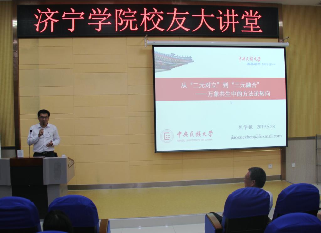 焦学振以《从“二元对立”到“三元融合”——万象共生中的方法论转向》为题,结合自己的求学和科研学术经历,做了关于人文环境的本体分析,提醒广大学子任何时候都要对自己所处的环境有清醒的认识,分析环境优劣,做好规划,扬长避短,朝着初心所向,矢志不移;告诫大家坚守梦想,不论起点高低,都能登上知识的高峰,领略壮丽的风景。