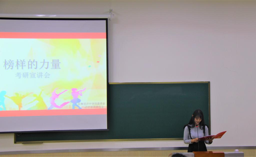 5月28日、29日下午,由校团委举办,校学生会承办的“榜样的力量”考研经验宣讲会在2号楼B102和B202教室举行。15名优秀毕业生通过他们励志向上的故事分享考研的成功经历。校团委书记马新蕾及相关负责老师和400余名学生参加本次活动。此次活动通过亚星在线登录官网学生会官方QQ空间进行了网络直播,高新区和支教的同学们纷纷通过网络观看了直播。