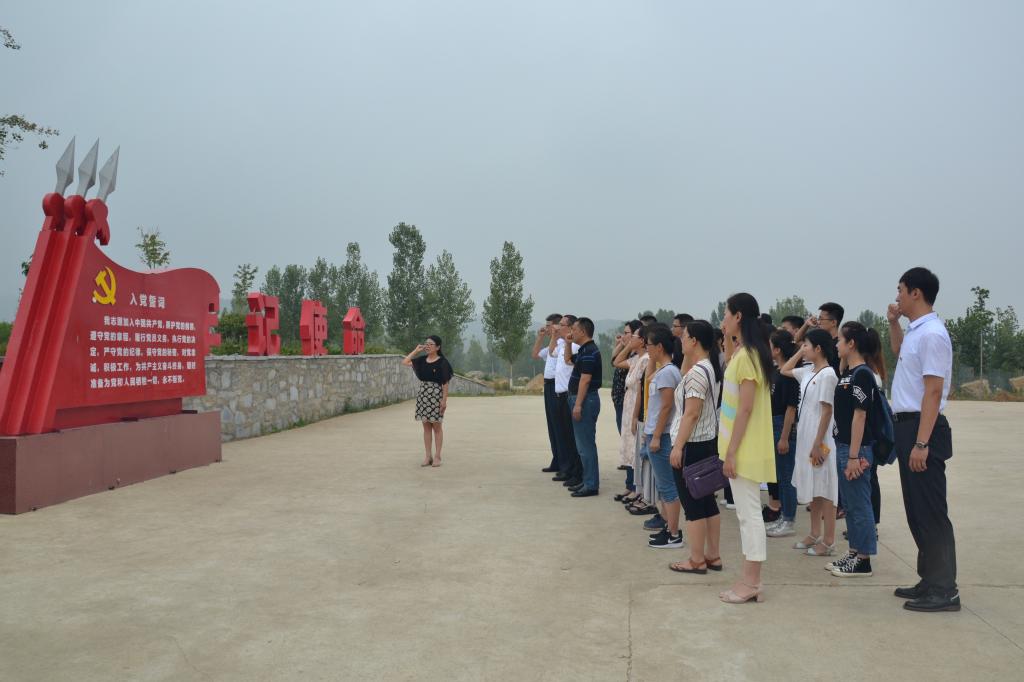 仪式结束后,党员们乘车前往石门山镇“红色记忆·黄沟”——曲阜市第一个农村党支部诞生地,开展“不忘初心、牢记使命”主题党日活动。党员们在讲解员的介绍下驻足观看,接受红色教育的洗礼。一幅幅形象生动、图文并茂的画面,充分展示了党性教育和反腐倡廉教育的丰富内涵。在碑亭广场,全体党员重温了入党誓词,对照曲阜市第一个农村党支部——董家庄支部的初心,寻找差距,领悟初心,守护初心、践行初心。